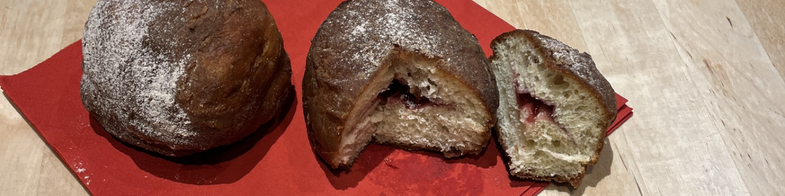 Auf genügend Mehl 0.5cm dick auswahlen. Mit einem Plastik oder Metallbecher mit 8-10 cm Durchmesser (kein Glas! wegen Bruchgefahr) runde Teile ausstechen. Auf jeden 2. in der Mitte wenig Konfiture geben, Rand mit Wasser befeuchten und mit einem Deckel verschliessen. Alternative kann auch 1cm runde Teile gestochen werden und dann die Konfiture nach dem ausbacken mit Konfiture füllen.